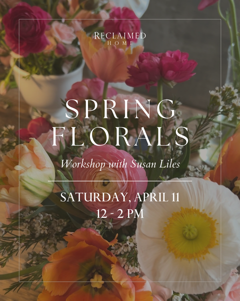 Come play with flowers & welcome spring with us! Spend the morning with our favorite floral designer, Susan Liles, as she takes us through building a stunning live floral arrangement that you'll get to take home. Walk away with an expert's tips and tricks in your back pocket to celebrate the bounty of the season.